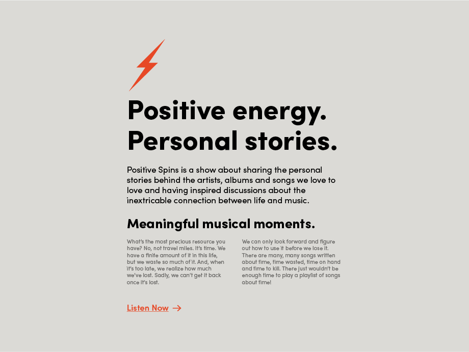 Positive Spins is a show for music fans. It’s about sharing the personal stories behind the artist, albums and songs we love to love and having inspired discussions about the inextricable connection between life and music.